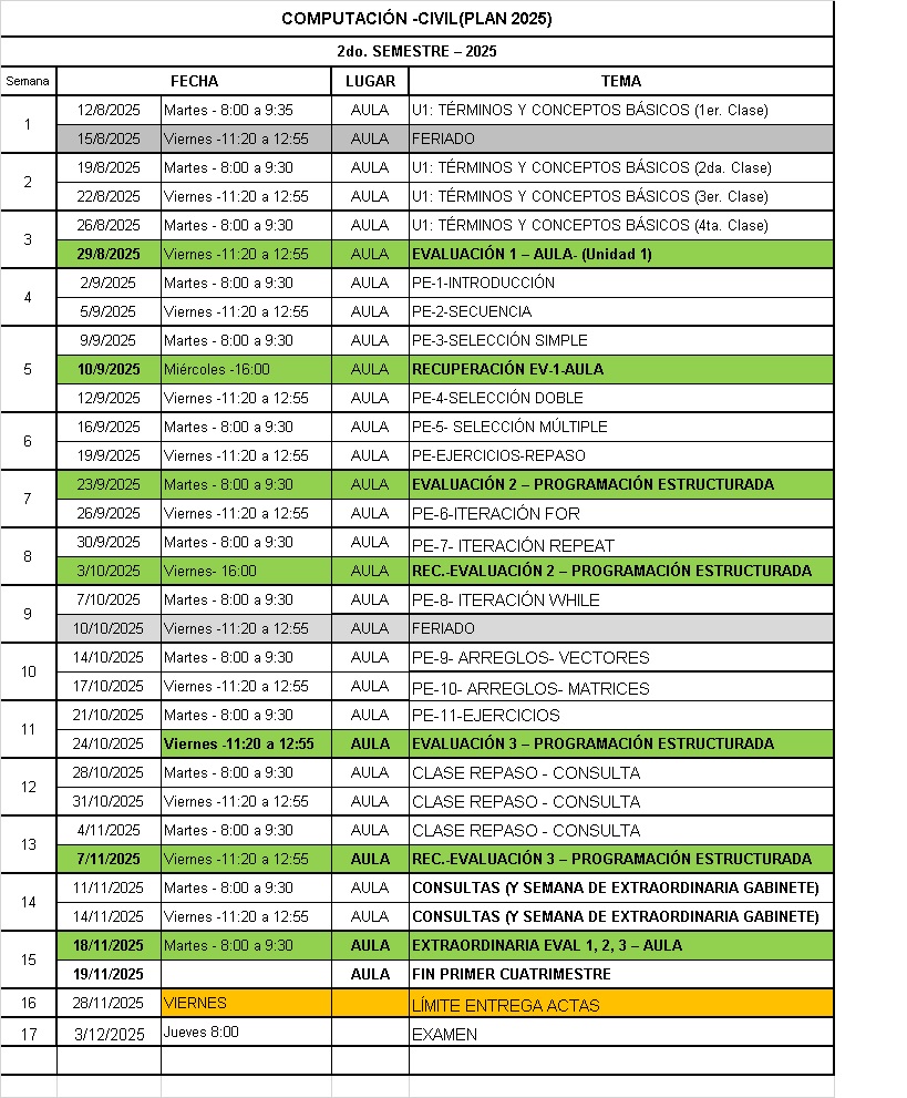 HORARIOS Y CRONOGRAMA DE ACTIVIDADES – 2025
